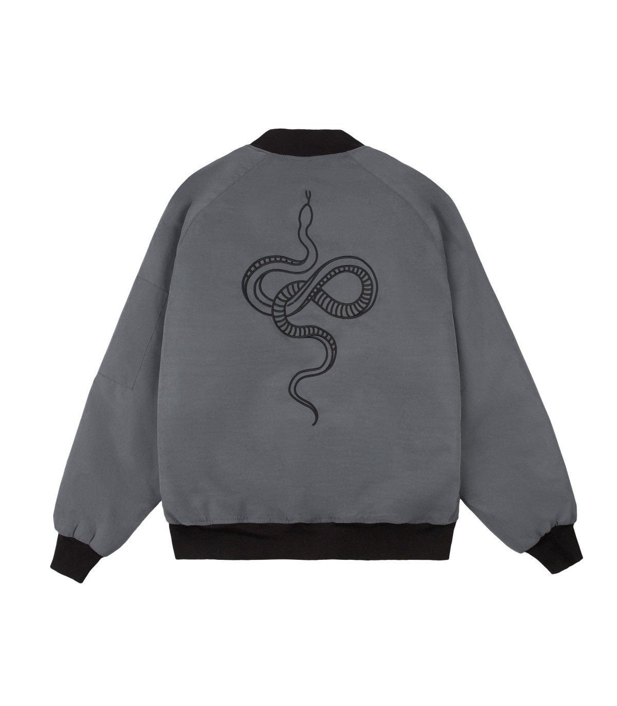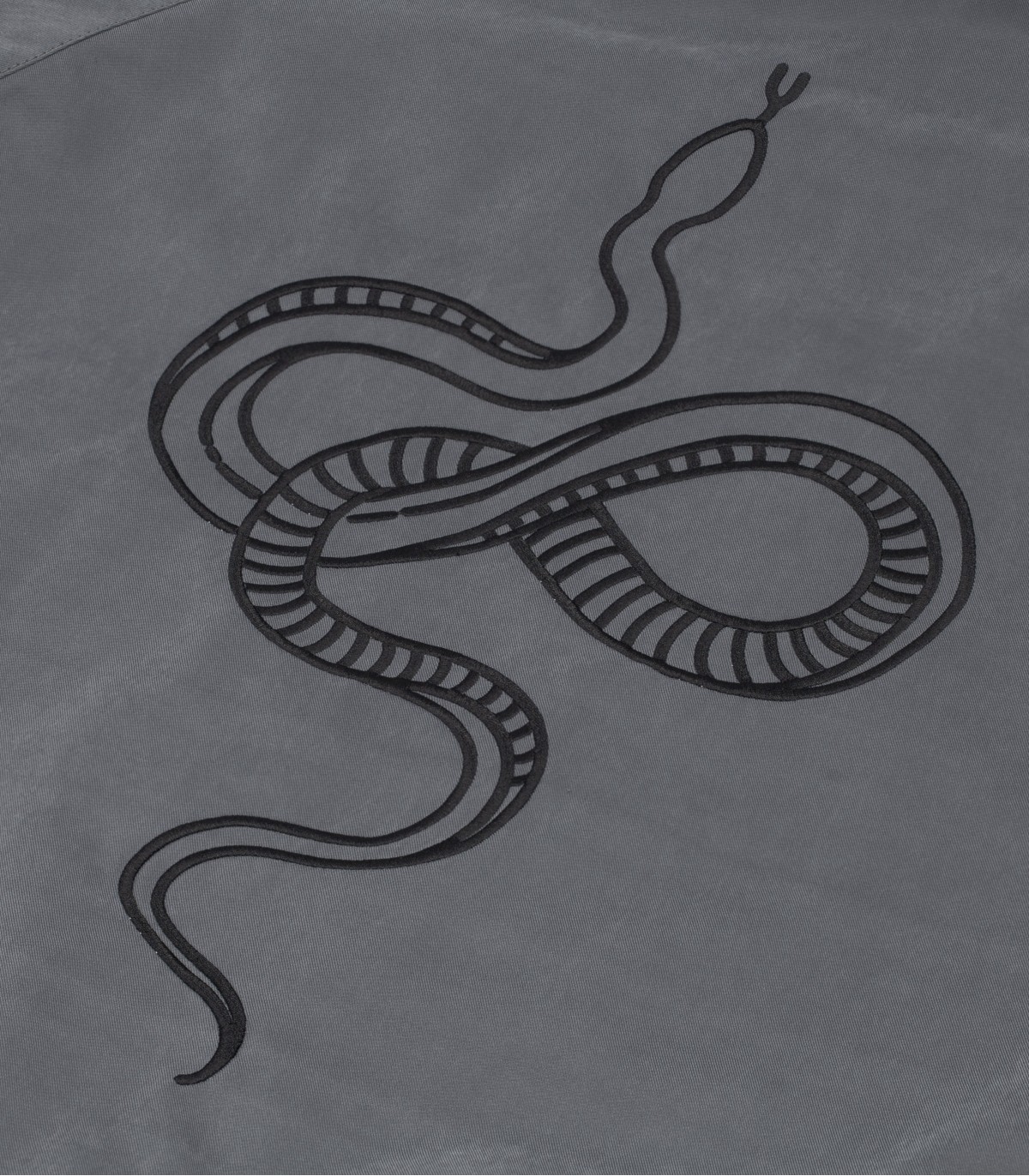 Бомбер 'Snake' с огромной вышивкой змеи во всю спину. Мембранная бархатная ткань c soft-touch эффектом защитит от осадков, позволив телу комфортно дышать.