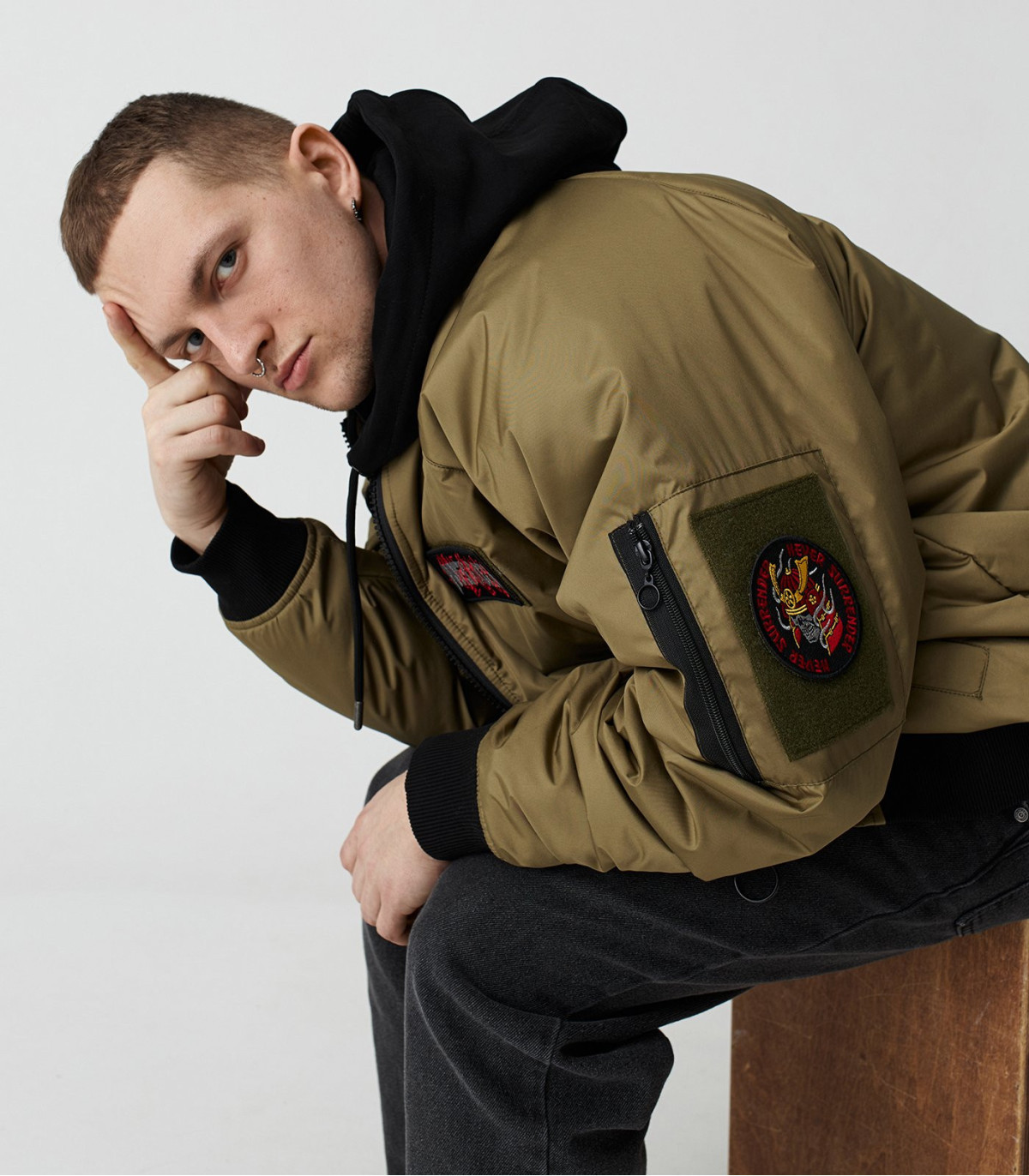 Бомбер MEDOOZA с патчами "Bushido" (оливковый)