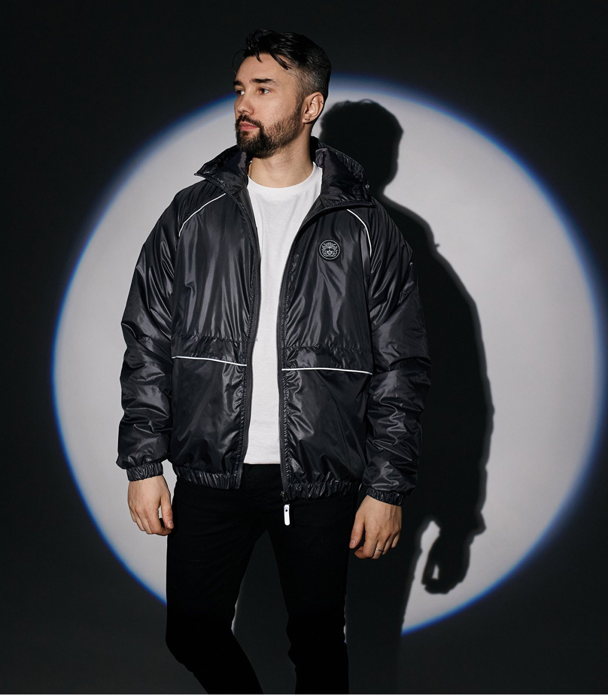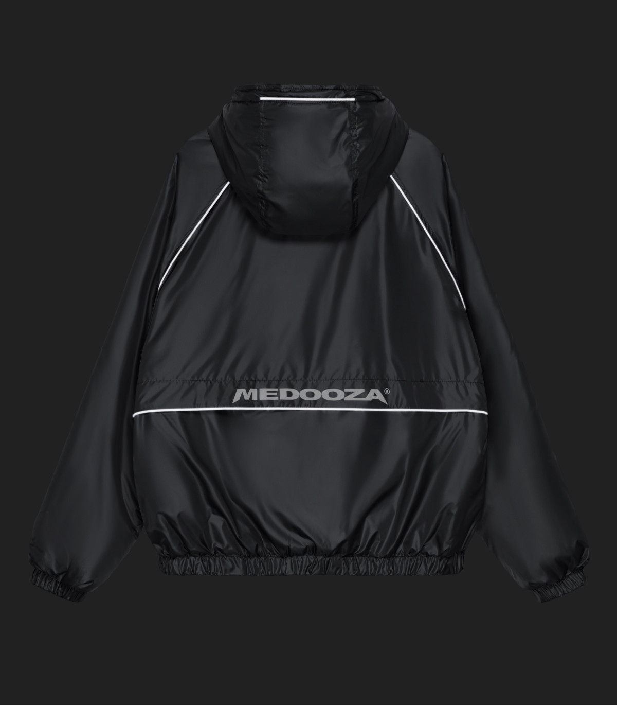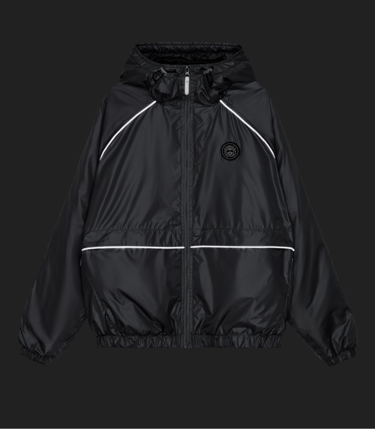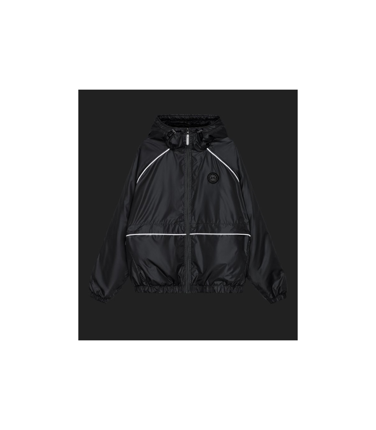 — Короткий широкий фит, резинки по низу и рукавам изделия.