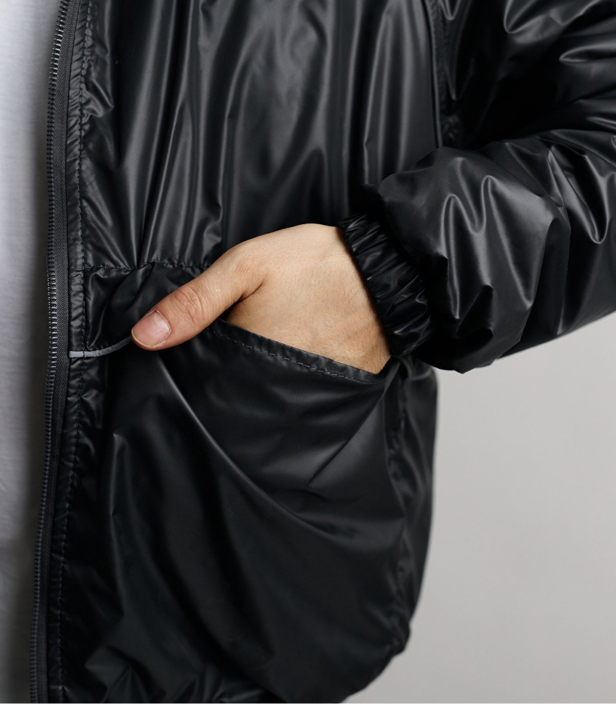 — Гладкая блестящая ткань с WR-пропиткой.