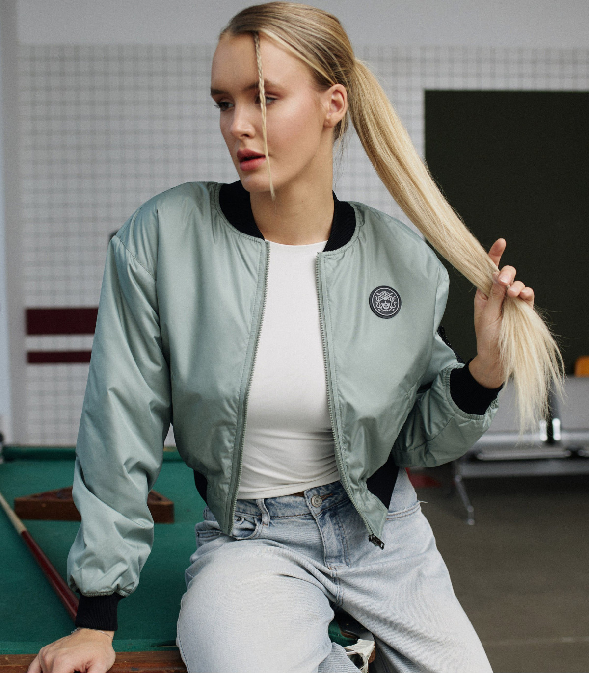 Бомбер MEDOOZA "Crane Twins" (W) (мятный)