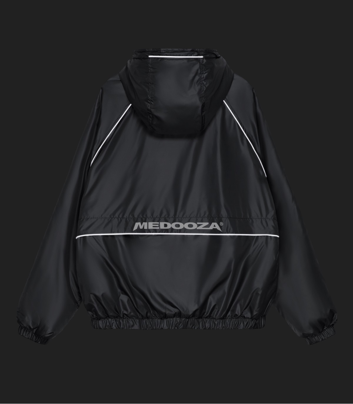 — Короткий широкий фит, резинки по низу и рукавам изделия.