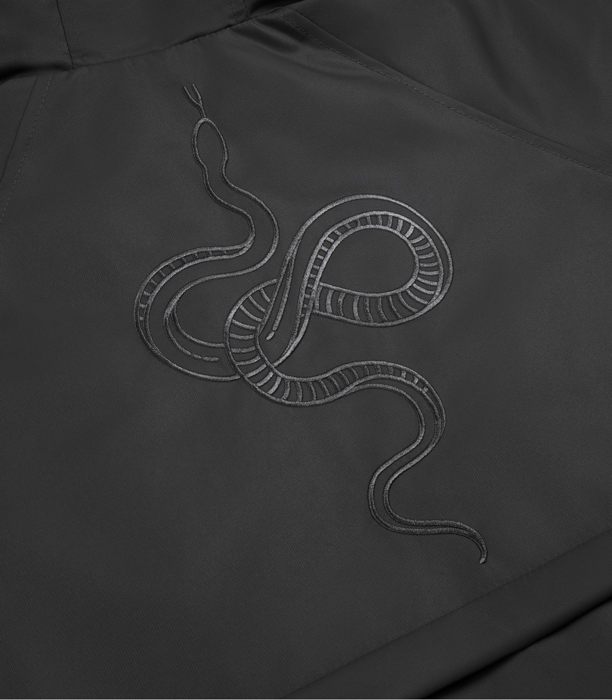 — Вышивка ‘Snake’ на спине и лаконичная вышивка с брендингом.
