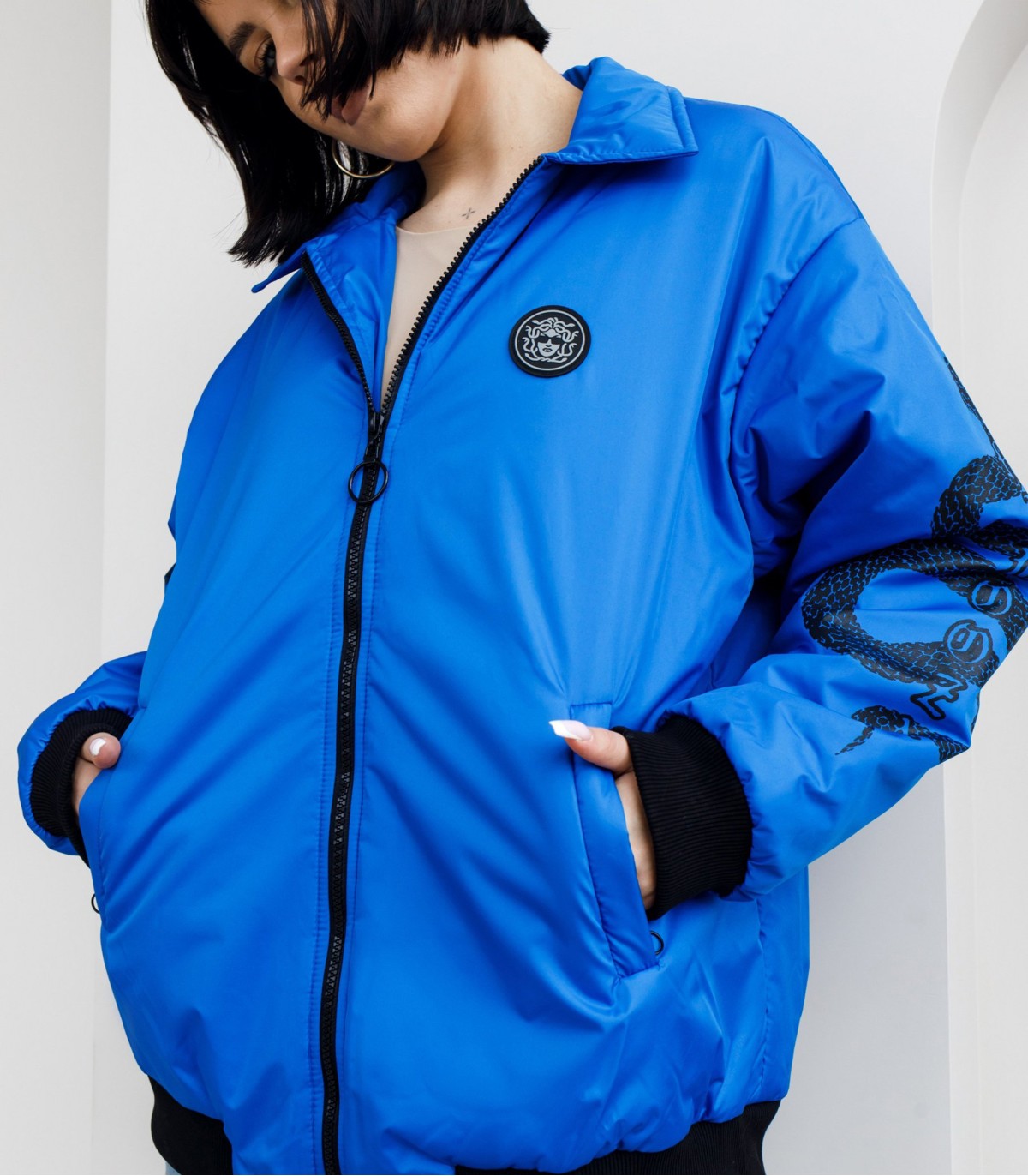 — Бомбер из ветронепроницаемого материала с водоотталкивающей пропиткой.